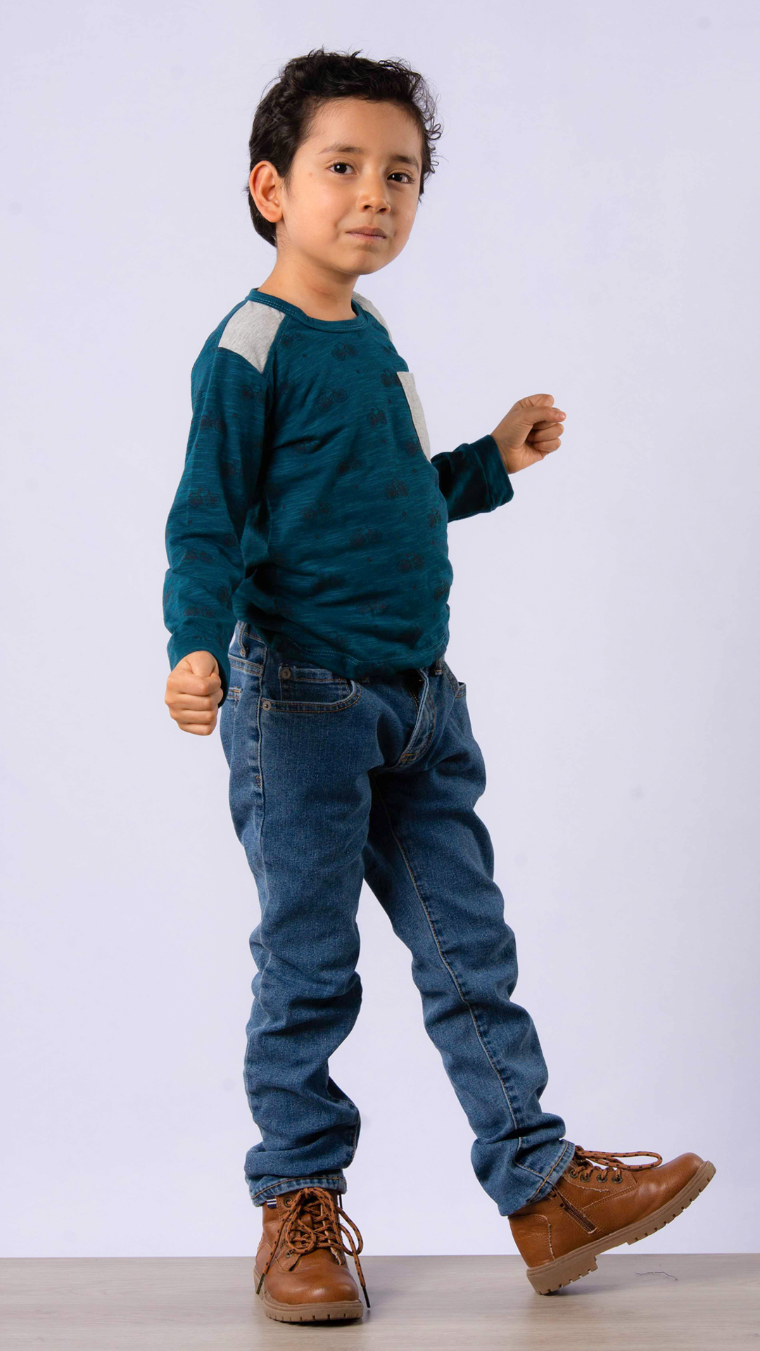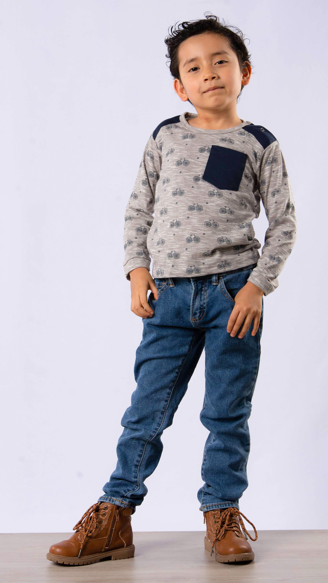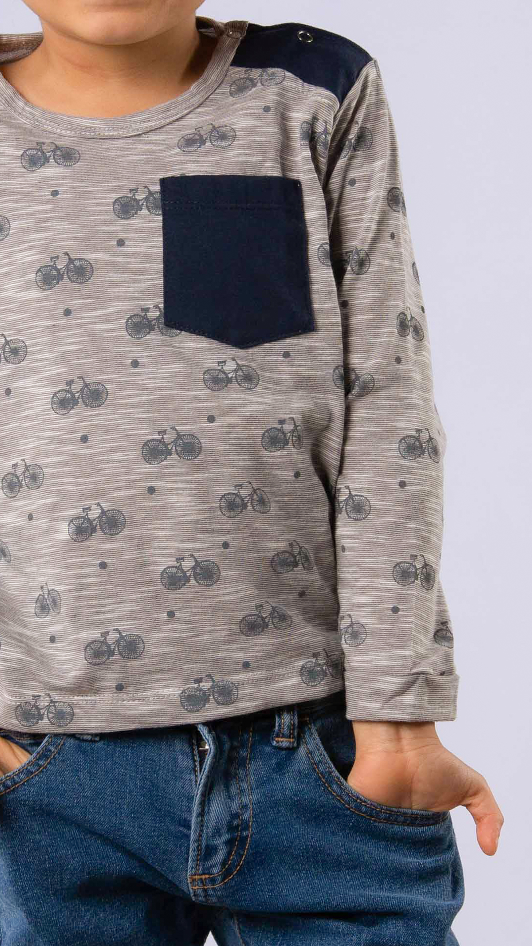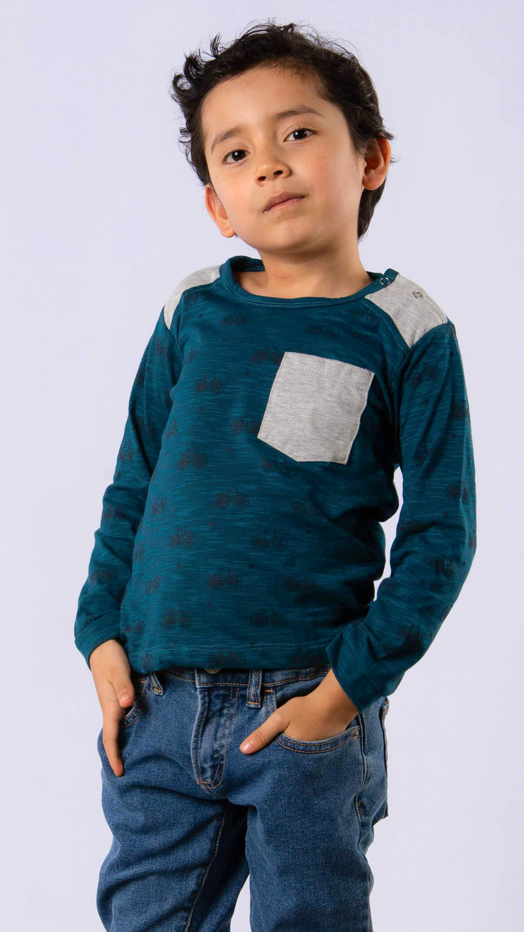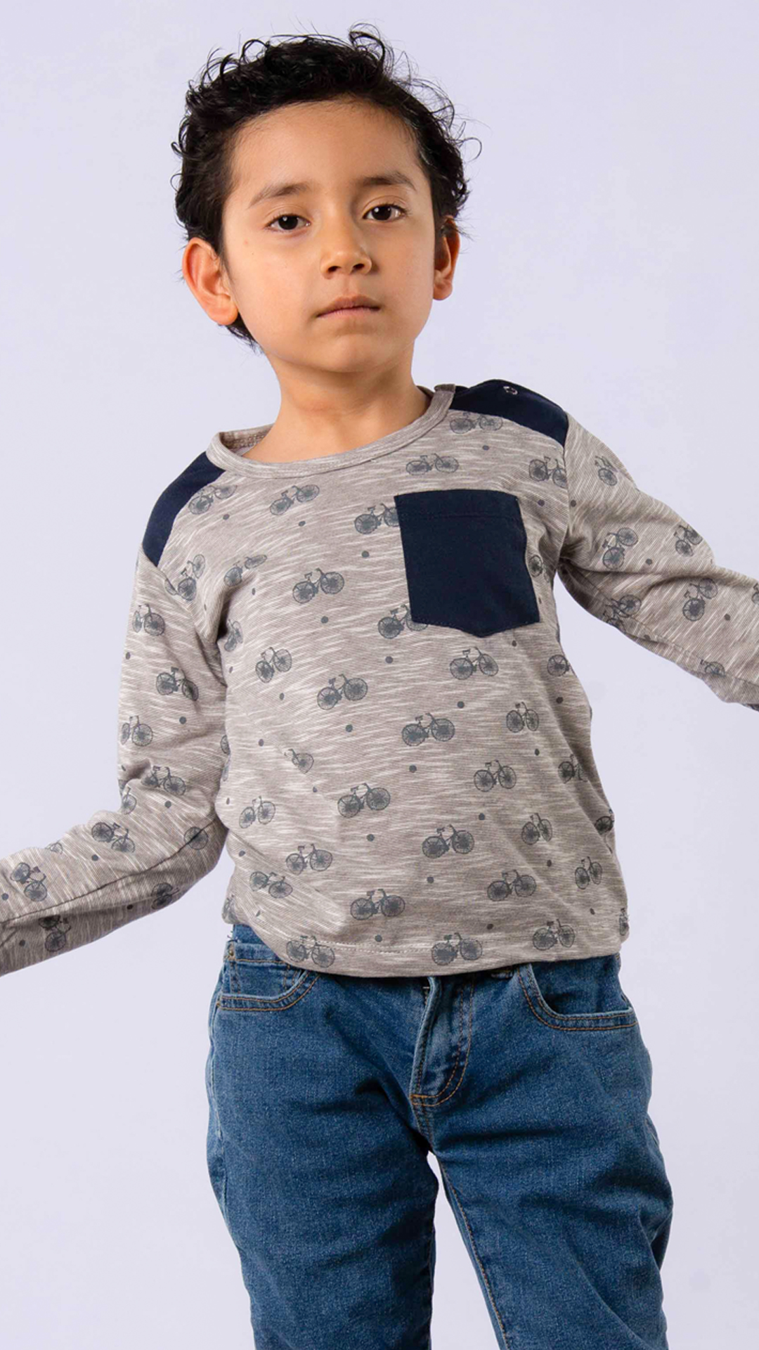 Buso mini print manga larga con bolsillo y detalle en hombros combinado.