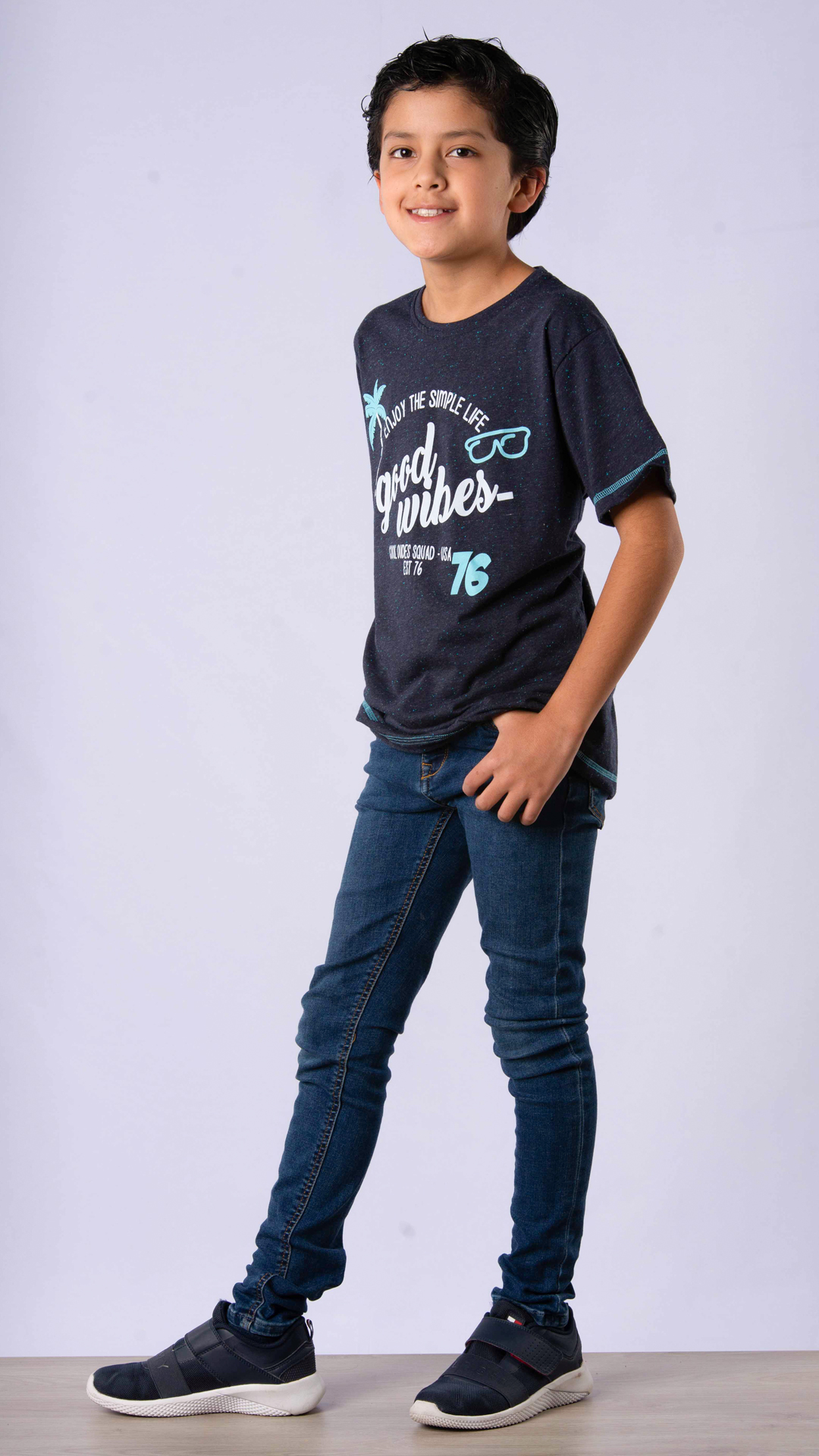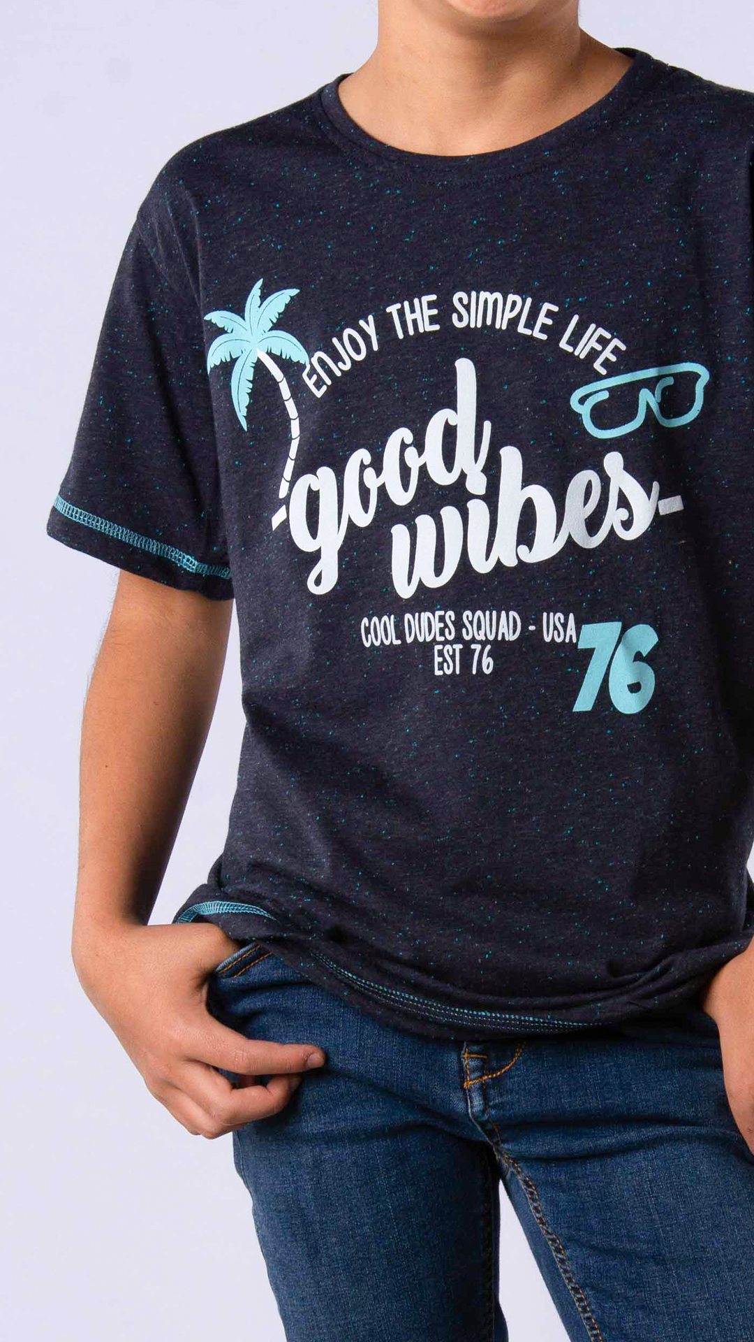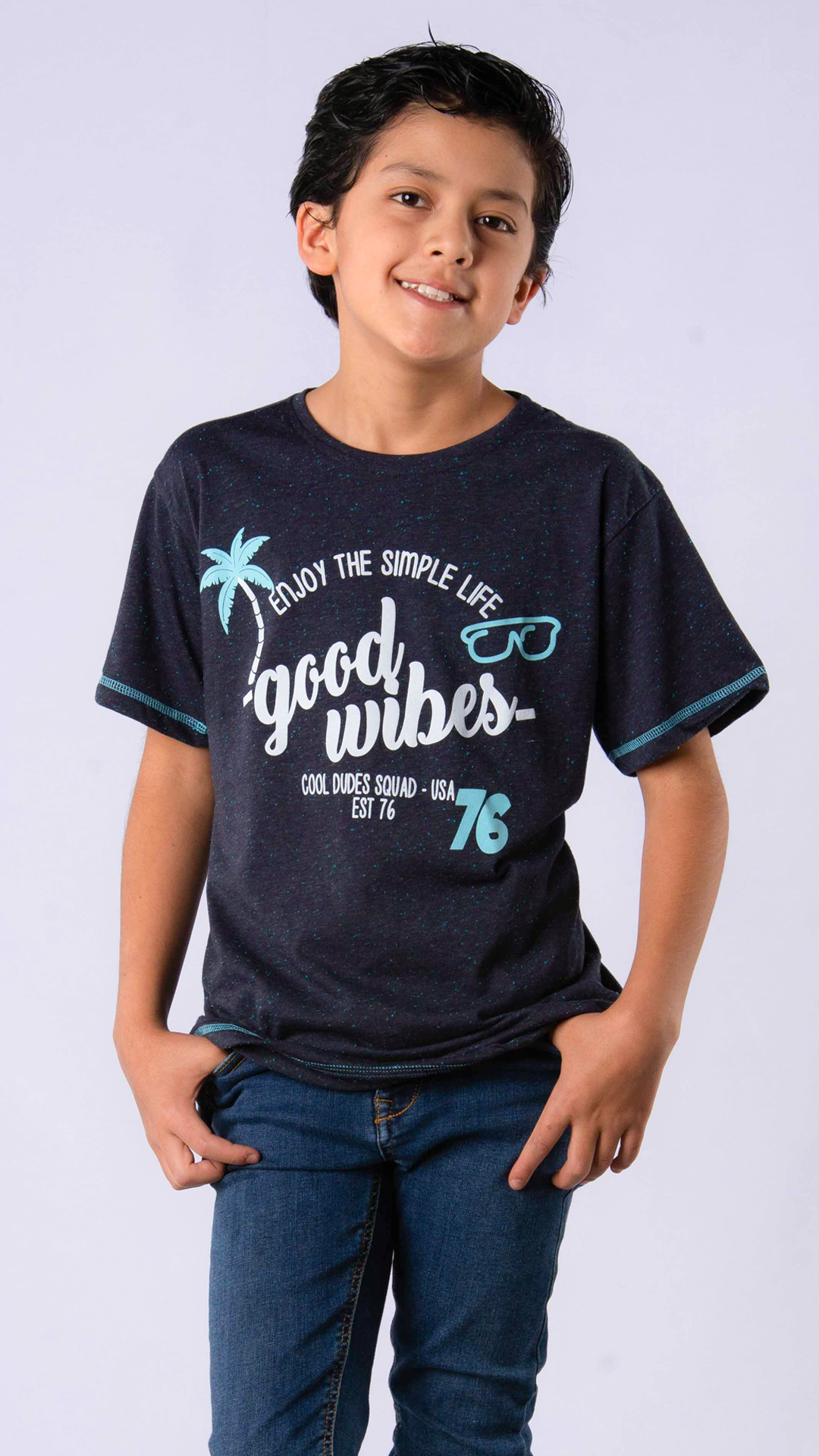 Camiseta estampada texto cuello redondo manga corta combinada.