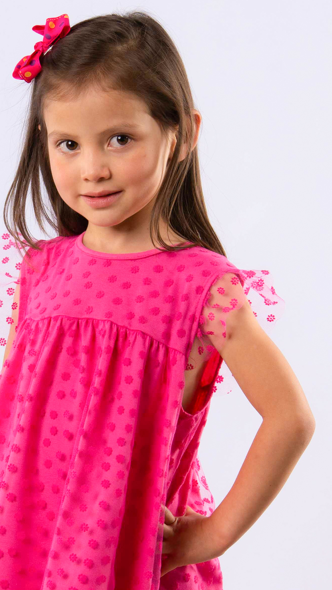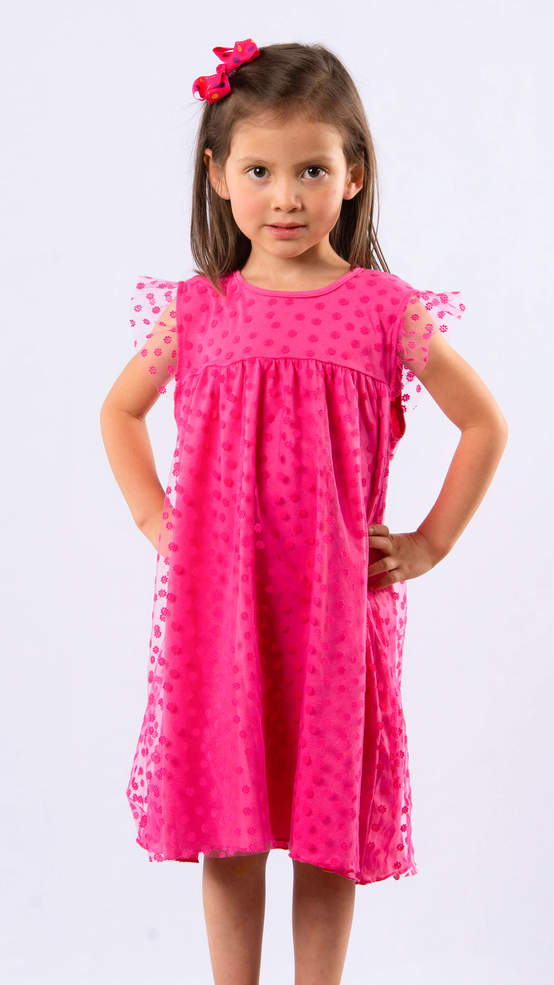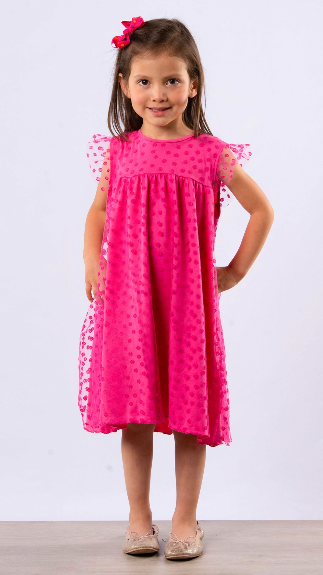 Vestido cuello redondo chiffon y vuelo en el bajo.