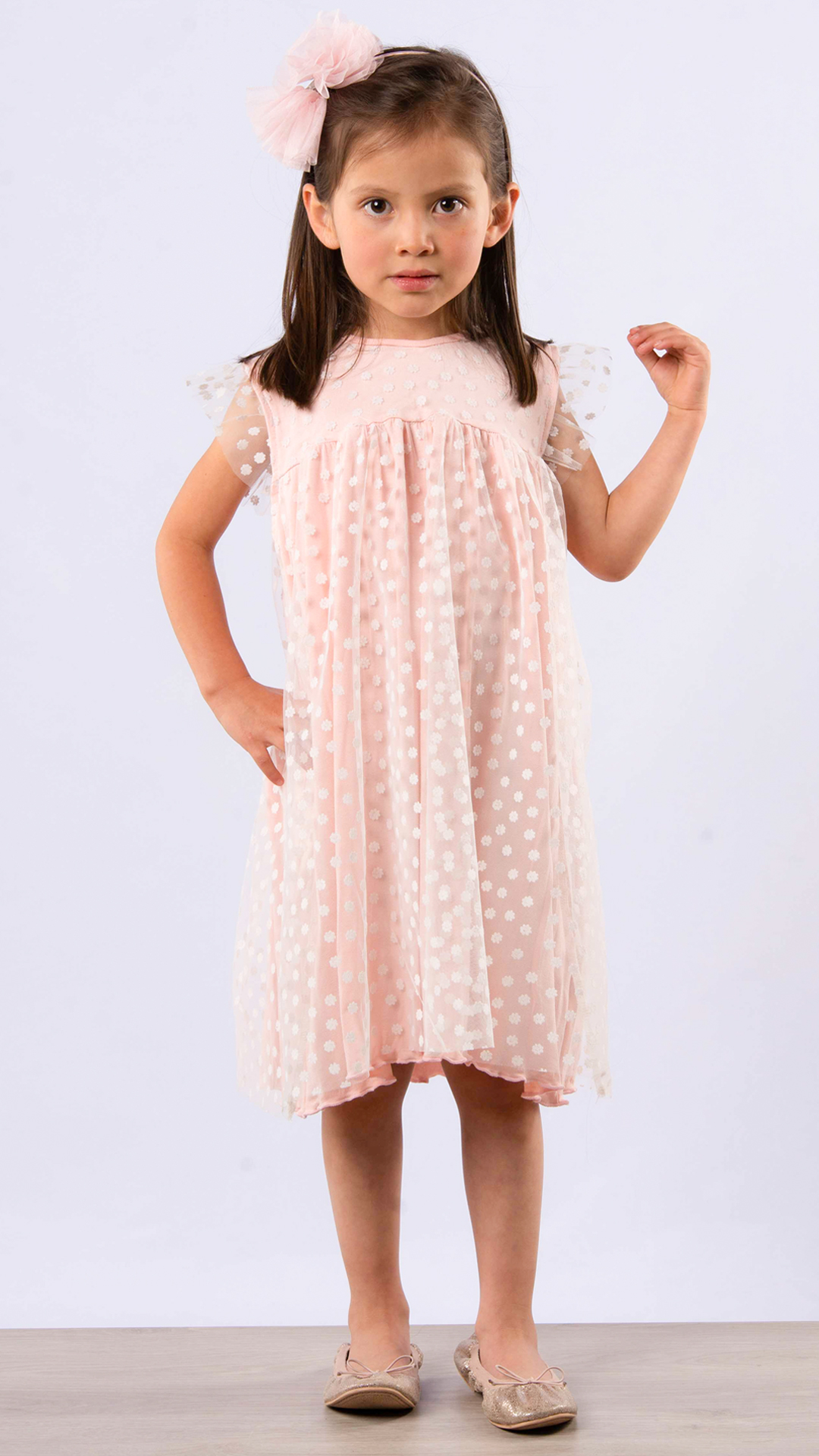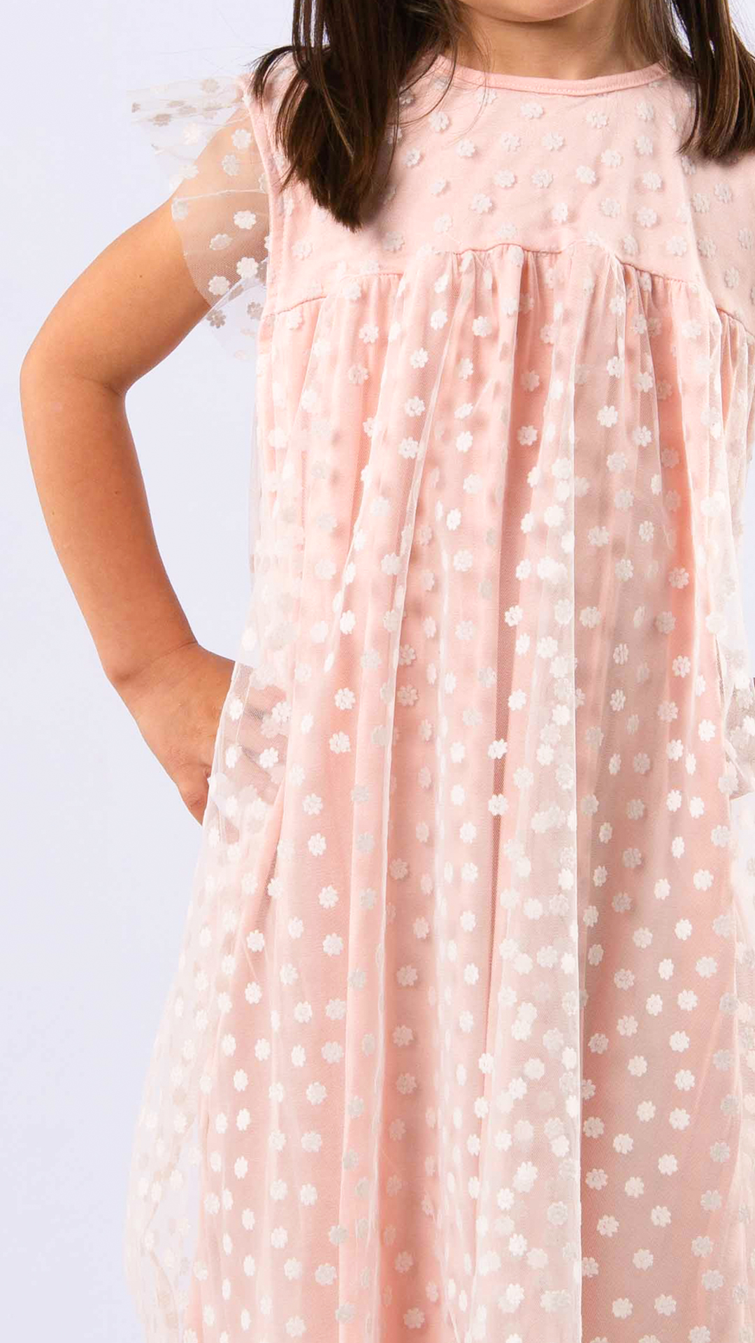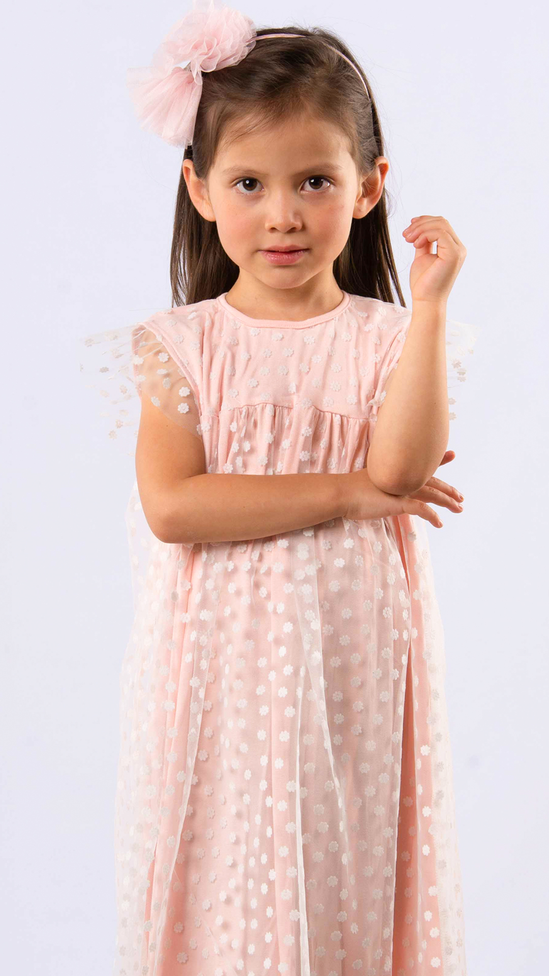 Vestido cuello redondo chiffon y vuelo en el bajo.