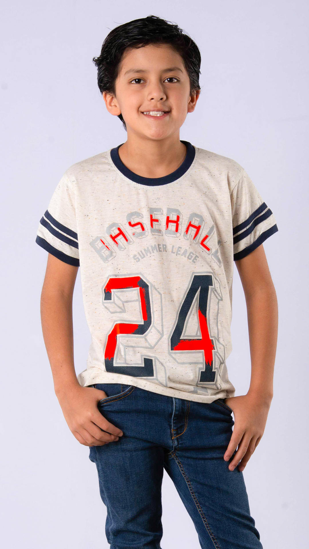 Camiseta estampada manga corta cuello combinado.