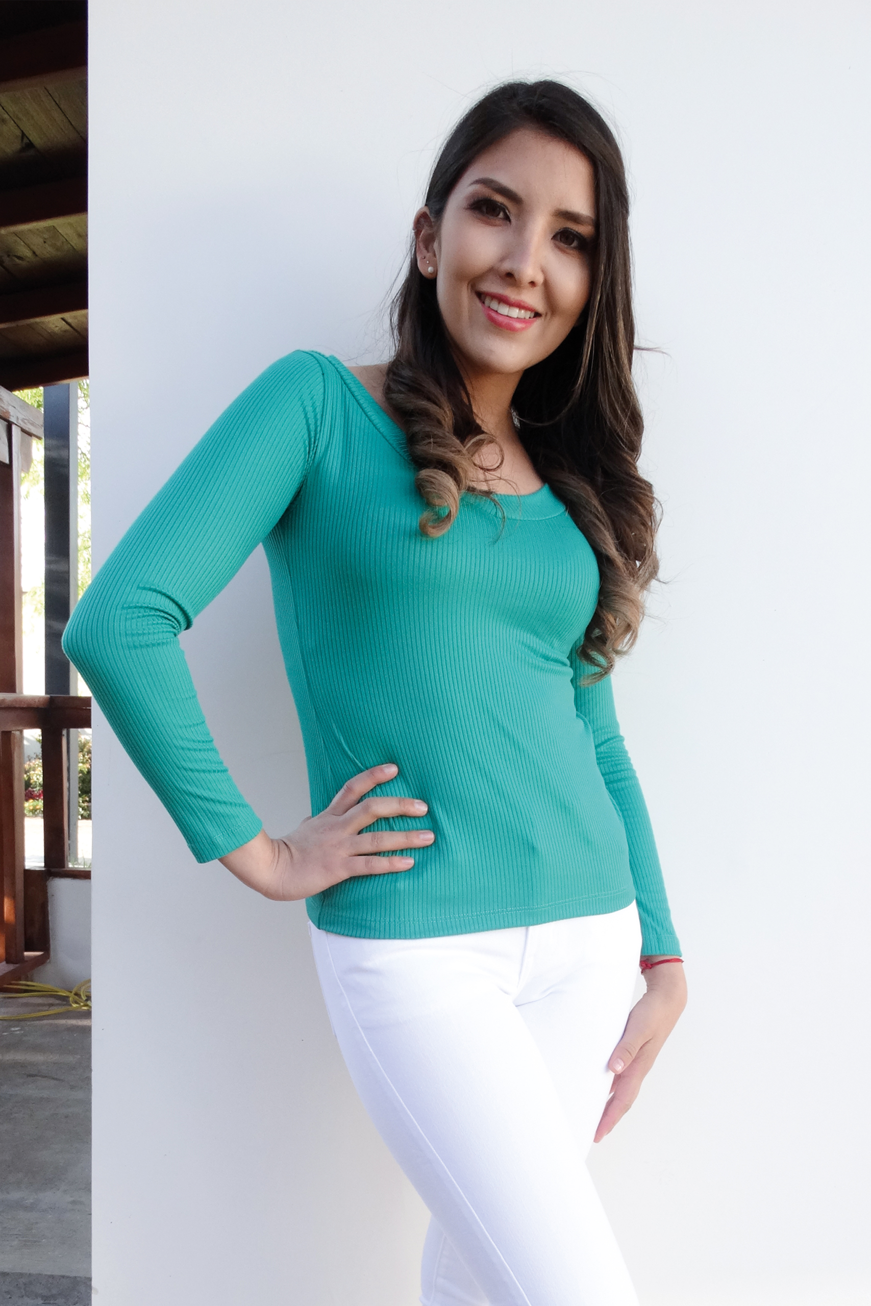 Blusa escote redondo mangas largas tejido estructura.